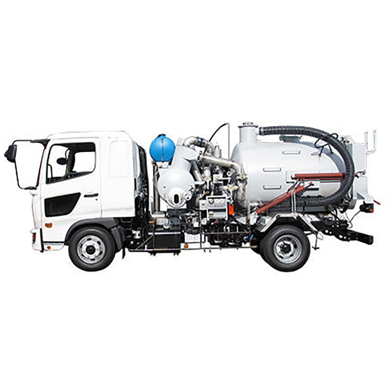 汚泥などを強力に吸引。道路側溝や街渠マスの清掃などに活躍します。